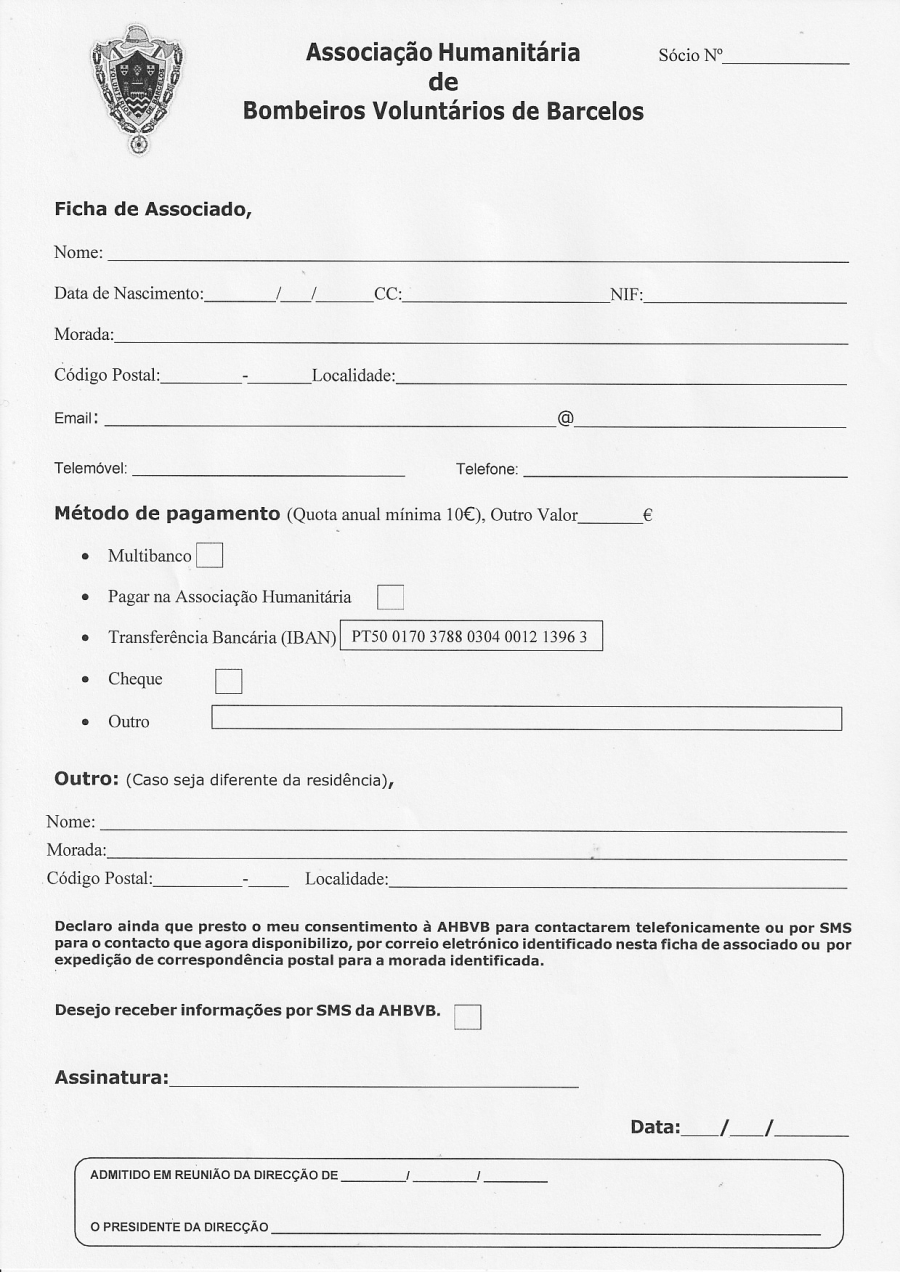 Imprima a ficha de associado e entregue-a na secretaria do nosso quartel, desde já agradecemos.