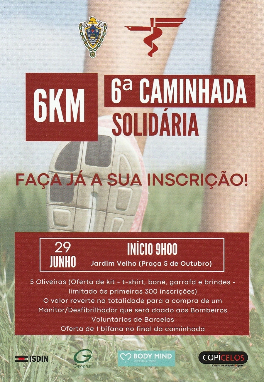 A Farmácia Oliveira vai realizar a 6ª Caminhada Solidária em que o valor angariado reverte na totalidade para a compra de um Monitor / Desfibrilhador que será doado aos Bombeiros Voluntários de Barcelos.